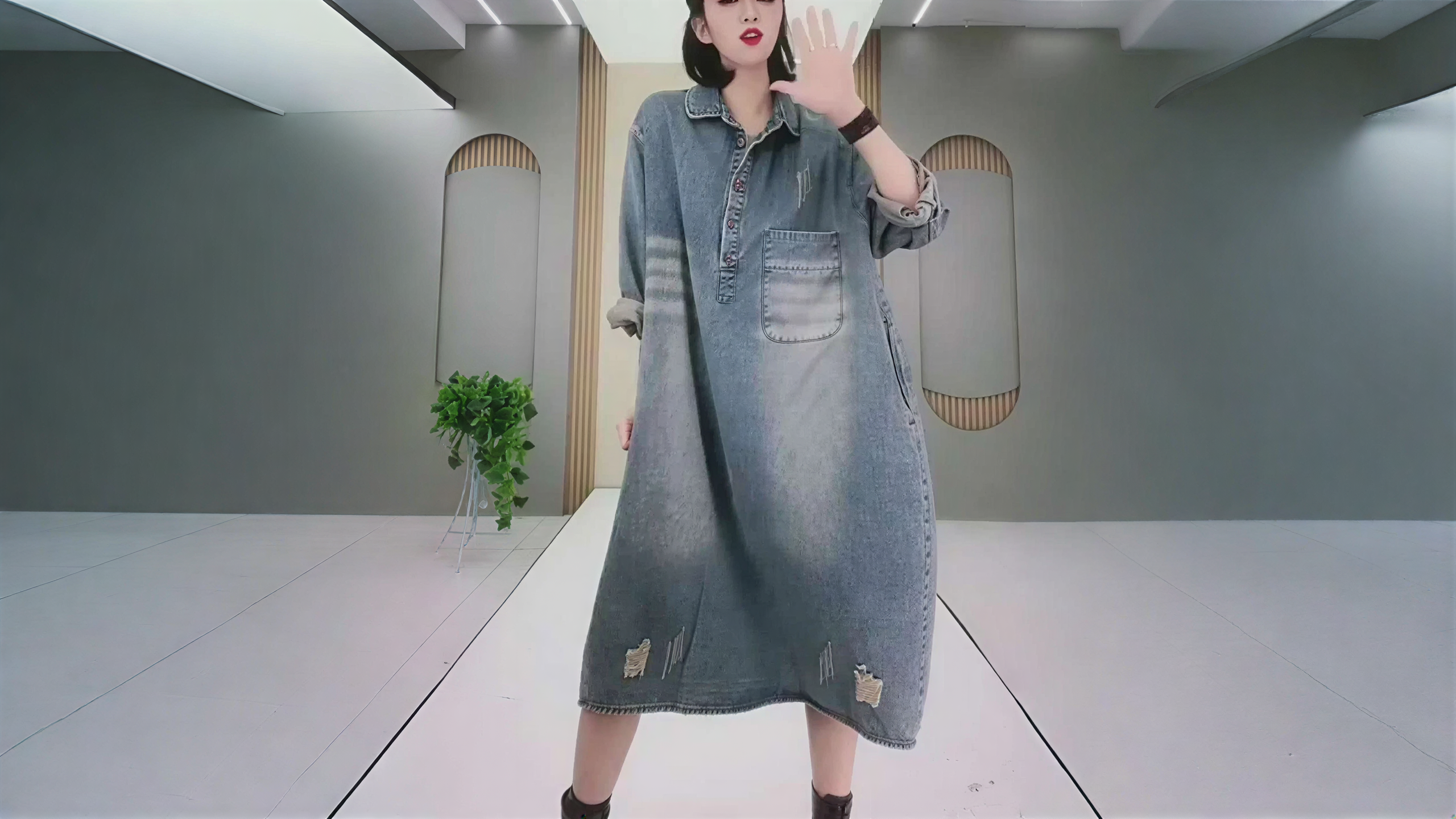 Street style oversized denim skirt